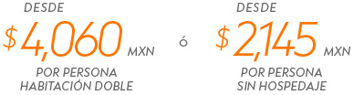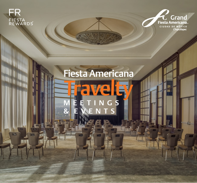 Promoción válida a junio de 2024. Sujeto a disponibilidad de espacios. Precios expresados en moneda nacional. Impuestos incluidos. Máximo 70 personas en montaje tipo escuela (sin escenario). *Los paquetes incluyen: desayuno buffet, coffee break Grand por 8 horas (café, agua embotellada, té todo el día), por la mañana jugo de temporada y pan dulce; por la tarde refrescos y 50% crudités y 50% botana salada. Comida emplatada tres tiempos a elección del Chef con agua de sabor y/o refresco. |